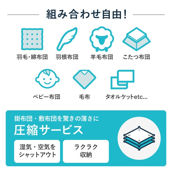 圧縮袋に入れて圧縮して送らないでください。
