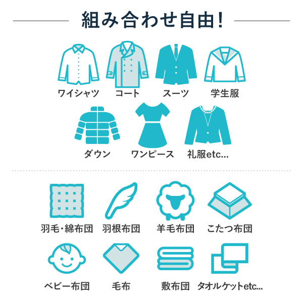 ヤマトヤだけの限定商品! Mixクリーニング 布団と衣類 布団2枚と衣類10点まで