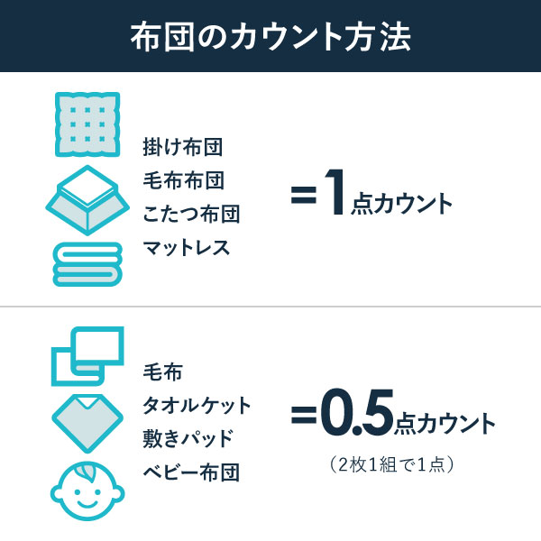 ※2点で1点カウントの寝具は1つの袋で圧縮いたします